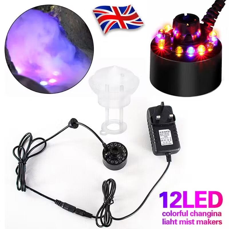 Transform your home, garden, or events with this 12 LED Ultrasonic Mist Maker—designed to create a magical fog effect for homes and holidays. Using advanced ultrasonic technology, it produces over 300mL of mist per hour, turning ponds, fish tanks, vases, or birdbaths into enchanting focal points. Perfect for Halloween, Christmas, or garden gatherings, the 12 changing LED lights add vibrant color to the mist, enhancing the festive atmosphere.