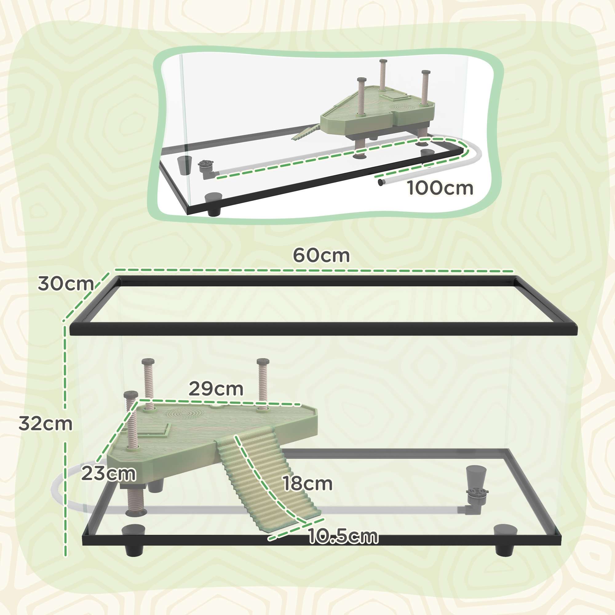 The 50L PawHut turtle tank – a spacious habitat for small turtles under 5cm. It features a basking platform, adjustable temperature between 18-34℃ and a 5mm tempered glass for clear observation. You can add gravel or plants to enhance their surroundings for them to feel extra comfortable. A must-have for small turtle owners, it’s a great home for pets to thrive and flourish.